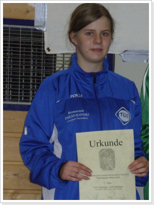 Erfolge gab es bei den Mannschaftswettbewerben, Maria Erdmenger belegte mit der Junioren Startgemeinschaft Schwenningen/Ditzingen den zweiten Platz und die A-Jugend Mannschaft mit Melanie Lippert, Hannah Berkenhagen und Maria Erdmenger als Dritte die Bronze Medaille.