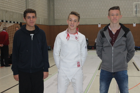 Lucas Fendt (Jahrgang 1999) hatte auf einen Start bei der A-Jugend verzichtet, um sich in der Junioren-Rangliste zu verbessern. Er erreichte als Elfter die 32er-Direktausscheidung. Nach zwei Siegen gegen Fechter aus Reutlingen und Ulm musste er sich im Viertelfinale seinem Böblinger Trainingspartner Daniel Karle geschlagen geben und wurde Sechster. Auch Lucas Fendt ist bei beiden deutschen Meisterschaften startberechtigt, bei der A-Jugend über die deutsche und bei den Junioren über die württembergische Rangliste. Im Teamwettbewerb startete Lucas zusammen mit zwei Ulmer Fechtern. Das Halbfinale ging etwas unglücklich mit 44:45 Treffern gegen Ditzingen verloren. Hochdramatisch dann der Kampf um Platz drei. Mit Lucas Fendt als Schlussfechter wurde die Mannschaft vom Landesleistungszentrum Heidenheim nach mehrmaligem Rückstand mit 45:44 Treffern besiegt.