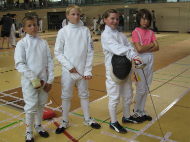 Schwenninger Fechterfolge bei den offenen Böblinger Degen-Stadtmeisterschaften, durch die Geschwister Janine und Melanie Lippert, sowie Sarah Schatton und Luca-Leon Peuker.